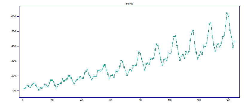 Concentremos en el caso predictivo y supongamos que tenemos una serie temporal como la de la Figura 1, la cual muestra la venta de boletos mensuales en una aerolínea. La empresa puede estar interesada en obtener predicciones a futuro de las ventas para así planificar promociones o para tener la infraestructura cubra las necesidades de los clientes.
